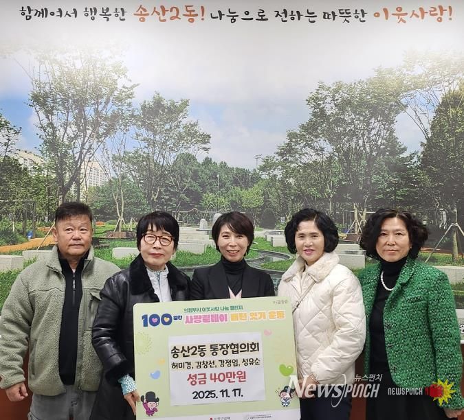 뉴스펀치 김길룡 기자 | 의정부시 송산2동주민센터는 11월 17일 허미경·김창선·강정임·성유순 통장이 어려운 이웃을 돕기 위해 성금 40만 원을 기탁했다고 밝혔다.