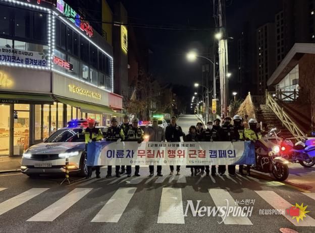 뉴스펀치 김길룡 기자 | 안양시 만안구는 지난 17일 19시부터 21시까지 이륜차 소음 및 불법 운행으로 인한 시민 불편을 해소하기 위해 상습 민원 다발 지역인 예술공원로 초입 삼거리(예술공원로 118) 일원에서 유관기관과 함께 불법 이륜차 야간 합동단속을 실시했다고 19일 밝혔다.