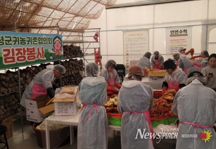 뉴스펀치 김길룡 기자 | 충북 증평군은 증평군귀농귀촌협의회(회장 신건석)가 19일 도안면 송정농원 교육장에서 ‘증평군귀농귀촌협의회 김장 나눔 봉사’활동을 진행했다고 밝혔다.
