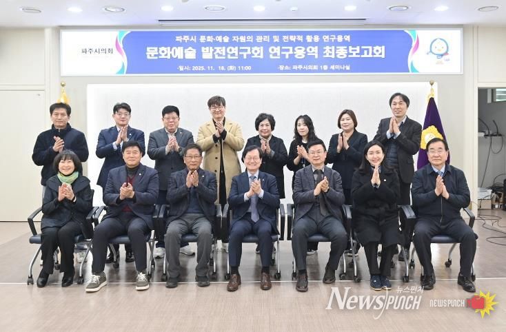 뉴스펀치 김길룡 기자 | 파주시의회 의원연구단체인‘문화예술 발전연구회’는 18일 의회 1층 세미나실에서 ‘파주시 문화ㆍ예술 자원의 관리 및 전략적 활용 연구용역 최종보고회’를 개최했다.