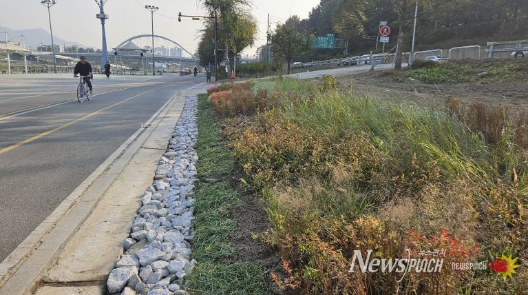 뉴스펀치 김완규 기자 | 서울 동대문구는 중랑천 이화교 일대 2,000㎡ 규모 공간에 ‘중랑천 그라스원’ 조성을 완료했다고 밝혔다. 해당 구간은 우천 시 토사 유출과 미관 저해 문제가 반복되던 곳으로, 구는 지난 10월 말 정비를 마치고 자연과 조화를 이루는 녹색 휴식공간으로 재탄생시켰다.