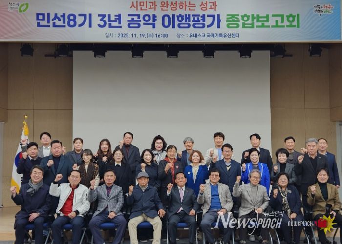 뉴스펀치 김길룡 기자 | 청주시는 19일 유네스코 국제기록유산센터에서 공약이행시민평가위원들과 관계 공무원 등 80여 명이 참석한 가운데 ‘민선8기 3년 공약 이행평가 종합보고회’를 개최했다.