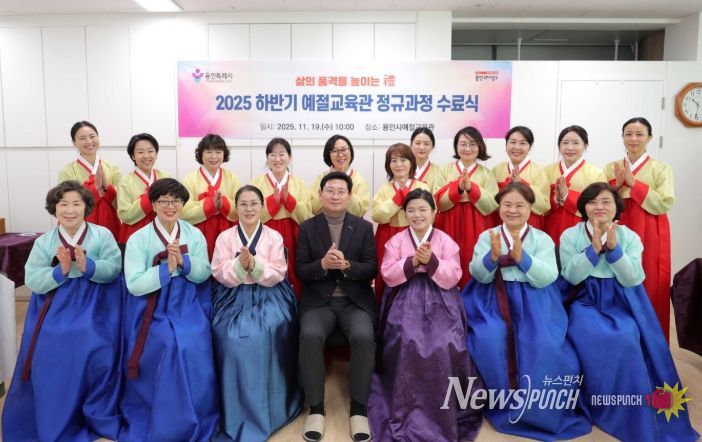 뉴스펀치 김길룡 기자 | 용인특례시는 19일 용인시예절교육관에서 ‘2025년 하반기 예절교육관 정규과정 프로그램’ 수료식을 개최했다고 밝혔다.