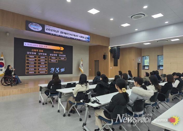 뉴스펀치 김길룡 기자 | 거제시는 지난 19일 시청 대회의실에서 신규공무원을 포함한 100여 명을 대상으로 ‘2025년 장애인식개선 대면교육’을 실시했다.
