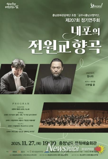 이번 연주회는 11월 27일 저녁 7시 30분, 충남도청 문예회관에서 열리며, 베이스바리톤 사무엘 윤의 깊고 단단한 울림과 드보르자크의 ‘교향곡 제8번’을 감상할 수 있다.