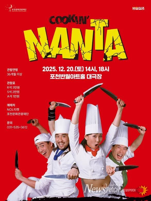 뉴스펀치 김길룡 기자 | 포천문화관광재단은 오는 12월 20일 포천반월아트홀 대극장에서 대한민국 대표 비언어 퍼포먼스 ‘난타(NANTA)’ 공연을 개최한다.