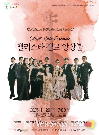 뉴스펀치 조평훈 기자 | 오직 첼로 12대로만 구성된 유일무이한 첼로 콘서트 '첼리스타 첼로 앙상블'이 오는 11월 29일 토요일 오후 5시 대구 남구 대덕문화전당 드림홀에서 열려 클래식 애호가의 눈길을 사로잡는다.