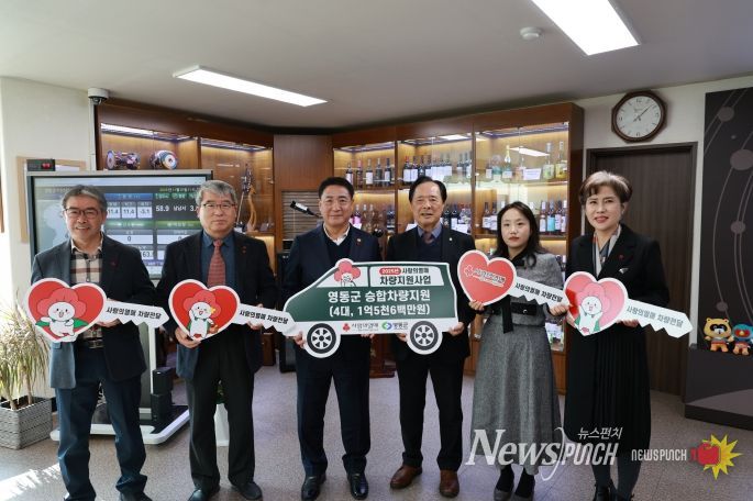 뉴스펀치 김길룡 기자 | 충북 영동군은 20일 군수실에서 ‘2025 사랑의 열매 차량지원사업’에 선정된 4개 기관을 대상으로 지원차량 전달식을 개최했다. 이번 전달식은 취약계층을 위한 복지서비스 접근성과 이동 편의성을 높이고, 지역 사회복지기관의 현장 활동을 적극 지원하기 위해 마련됐다.