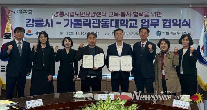 뉴스펀치 김길룡 기자 | 강릉시와 가톨릭관동대학교는 20일 오전 10시 30분 시청 8층 시민사랑방에서 강릉시립노인요양센터 교육·봉사 협력을 위한 업무협약을 체결한다.