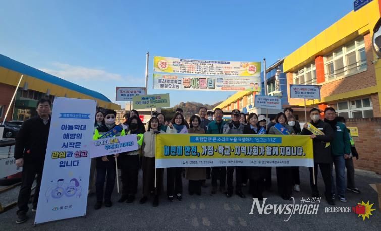 뉴스펀치 김길룡 기자 | 경상북도예천교육지원청은 11월 20일 예천초등학교 학생들을 대상으로 예천군청, 예천경찰서, 자율방범연합대 등 5개 유관기관 관계자 30여명이 참여한 가운데 '2025년 관계기관 합동 어린이 약취・유인 예방 캠페인'을 실시했다.