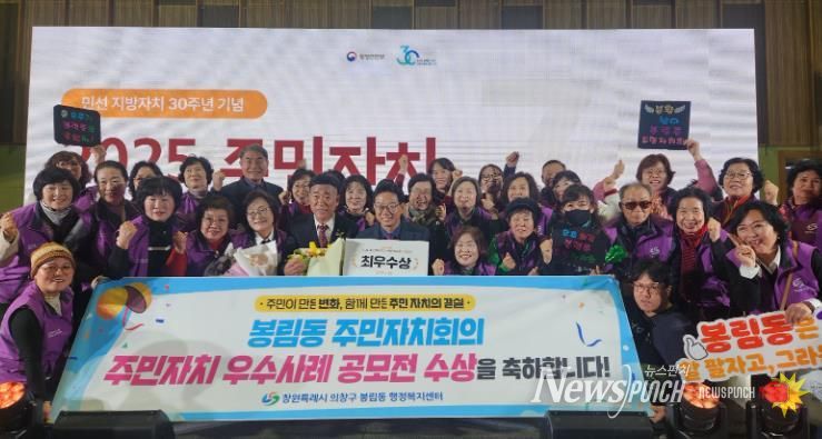뉴스펀치 김길룡 기자 | 창원특례시는 20일 울산 전시컨벤션센터에서 열린 행정안전부 주민자치 우수사례 공모전에서 의창구 봉림동 주민자치회가 ‘마을네크워크’ 분야로 최우수상을 수상하는 쾌거를 거뒀다고 밝혔다.