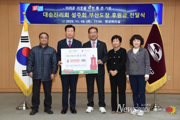 뉴스펀치 김길룡 기자 | 부산 사상구는 지난 18일, 종단 대순진리회성주회 부산도장이 사상구 취약계층 지원을 위해 성금 5천만 원을 기탁했다고 밝혔다.