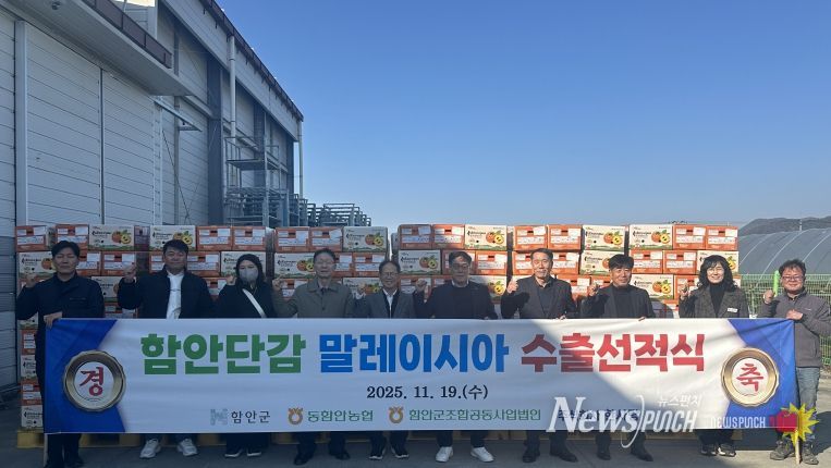 뉴스펀치 김길룡 기자 | 함안군은 지난 19일 칠북면 단감탑푸르트영농조합법인 선별장에서 말레이시아 수출을 위한 올해 첫 선적식을 열었다고 밝혔다.