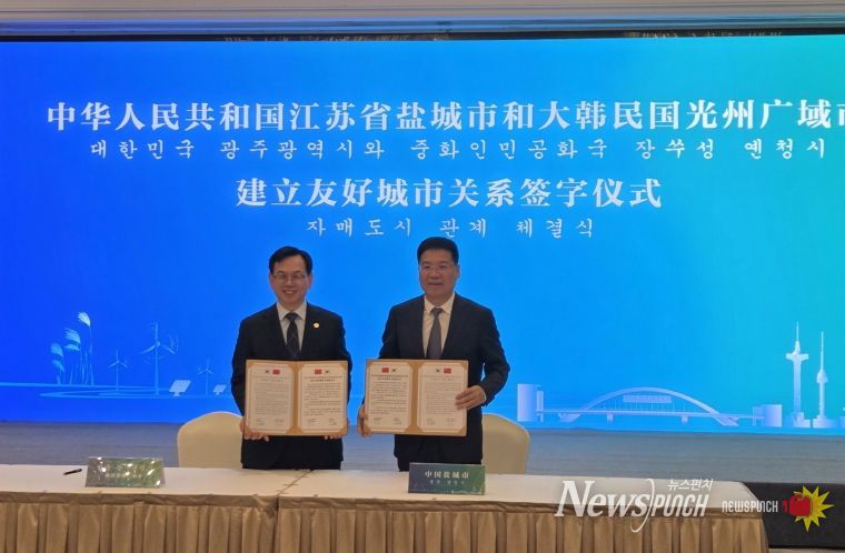 뉴스펀치 김길룡 기자 | 광주시가 중국 옌청시와 자매도시 협정을 체결했다. 이에 따라 옌청시는 광주의 여덟번째 자매도시가 됐다.