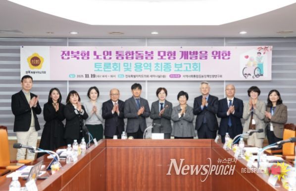 뉴스펀치 김길룡 기자 | 전북특별자치도의회 지역사회 통합돌봄 정책방향 연구회(대표 국주영은 의원)는 19일 도의회 세미나실에서 ‘전북형 노인 통합돌봄 모형 개발을 위한 연구용역 최종보고회 및 토론회’를 개최했다.