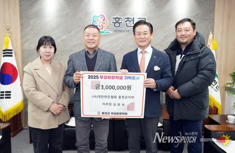 뉴스펀치 김길룡 기자 | (사)대한한돈협회 홍천군지부는 11월 20일 홍천군 인재육성을 위한 무궁화장학금 300만 원을 기탁했다고 밝혔다.