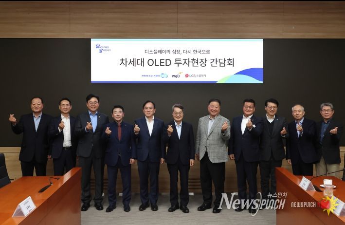 파주 LG디스플레이 R&D동에서 열린 ‘차세대 OLED 투자현장 간담회’에는 김경일 파주시장을 비롯해 박정 국회의원, 안명규·이용욱 도의원, LG디스플레이와 주요 협력사 대표 등 30여 명이 참석했다.