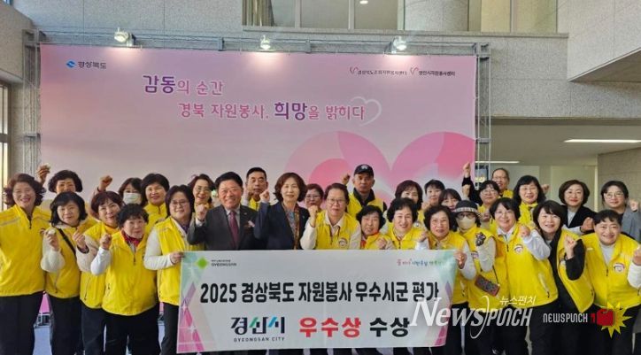 뉴스펀치 김길룡 기자 | 경산시는 19일, 영천시 실내체육관에서 개최된 '2025 경상북도 자원봉사 우수 시군 평가'에서 ‘우수상’으로 선정되어 수상의 영예를 안았다.