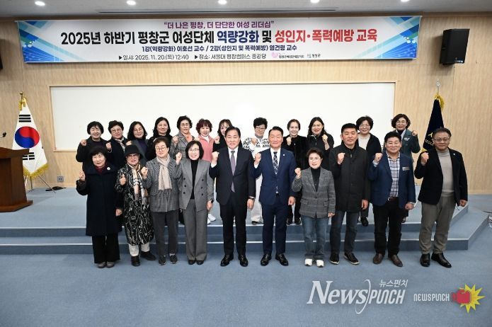 뉴스펀치 김길룡 기자 | 평창군여성단체협의회는 20일 서울대학교 평창캠퍼스에서 회원 130여 명이 참석한 가운데 2025년 평창군 여성 지도자 역량 강화 및 성인지·폭력예방 교육을 실시했다.
