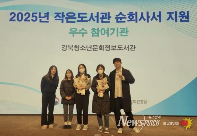 뉴스펀치 김완규 기자 | 강북청소년문화정보도서관이 지난 14일 서울 용산구 피스앤파크 컨벤션에서 열린 ‘2025년 작은도서관 순회사서 지원사업 최종 워크숍’에서 우수사업 시행기관으로 선정되는 영예를 안았다.