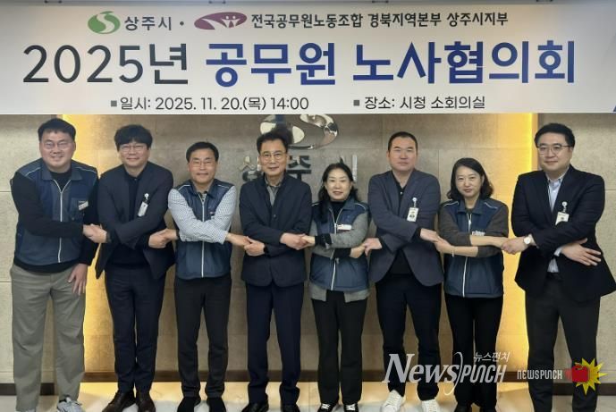 뉴스펀치 김길룡 기자 | 상주시는 11월 20일 시청 소회의실에서 공무원 노동조합과 직원 후생복지 증진과 근무 환경개선을 위한 ‘2025년도 공무원 노사협의회’를 개최했다.