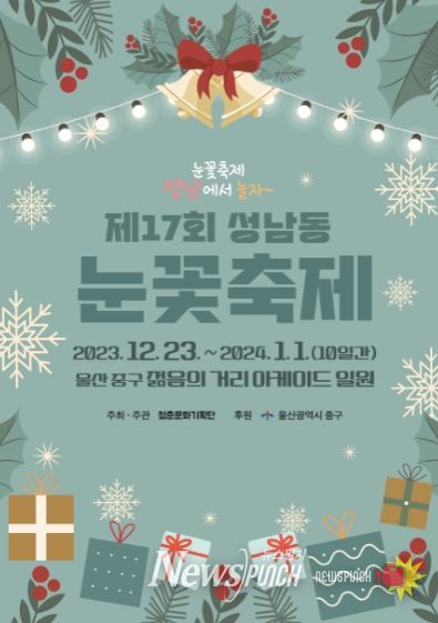 뉴스펀치 임정용 기자 | 지역의 대표 겨울축제 ‘제17회 성남동 눈꽃축제’가 오는 12월 23일부터 내년 1월 1일까지 10일 동안 성남동 젊음의거리 및 문화의거리에서 열린다.