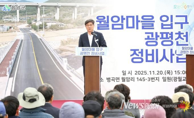 진병영 함양군수는 “농촌 지역 주민의 교통 불편과 지역의 열악한 생활환경 개선은 물론 주민들의 오랜 숙원사업을 해소하고자 노력해 왔다”라며 “이번 월암마을 입구 광평천 정비사업 준공을 계기로 낡은 기반 시설을 지속적으로 점검하고 정비하여 사람이 중심이 되는 안전한 환경을 조성하기 위해 최선을 다하겠다”라고 말했다.