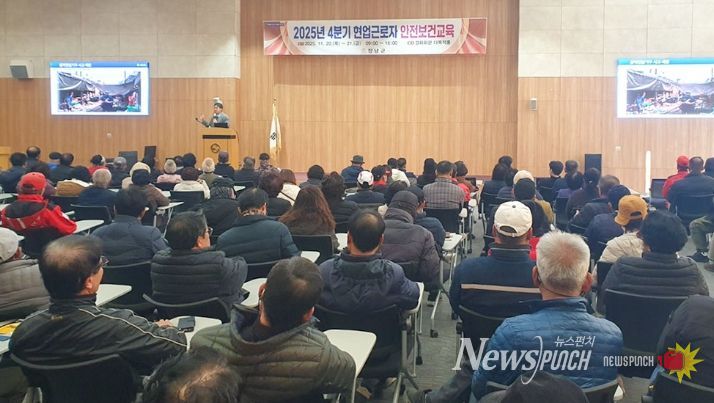 뉴스펀치 김길룡 기자 | 창녕군은 지난 20일부터 21일까지 이틀간 경화회관 다목적홀에서 소속 현업근로자 500여 명을 대상으로 ‘2025년 4분기 정기 안전보건교육’을 실시했다.