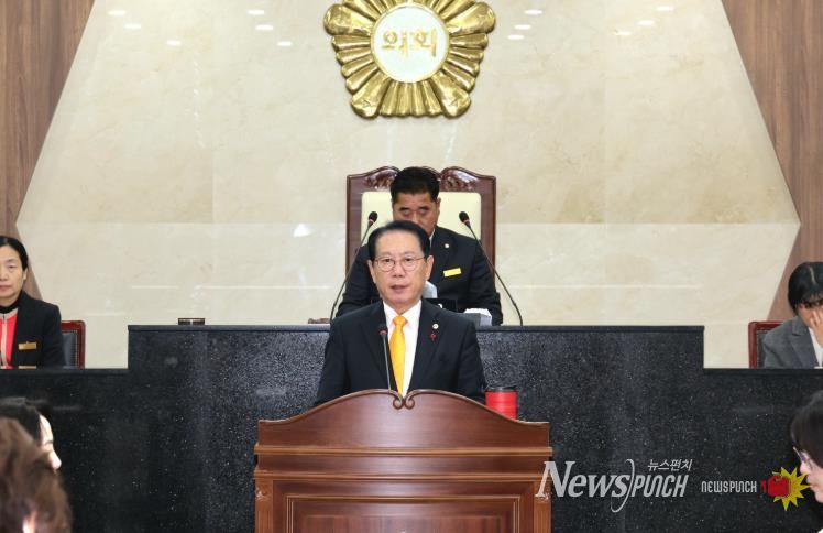 뉴스펀치 김길룡 기자 | 송인헌 충북 괴산군수가 21일 열린 제347회 괴산군의회 제2차 정례회에서 2026년 군정운영 방향을 구체적으로 제시했다.