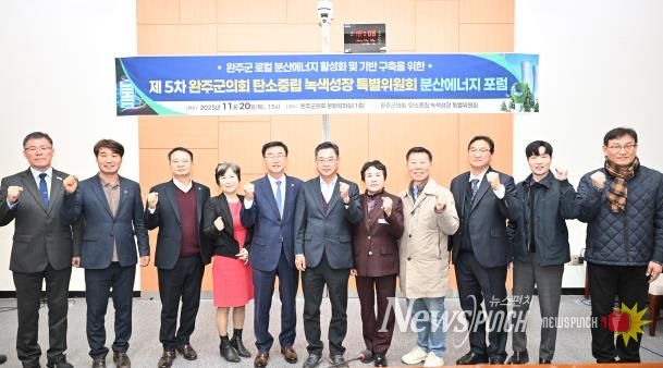 뉴스펀치 김길룡 기자 | 완주군의회 탄소중립·녹색성장 특별위원회는 20일 의회 문화강좌실에서 ‘분산에너지 5차 포럼’을 열고, 바이오가스와 유기성 폐자원 활용을 통한 지역 에너지전환 방안을 모색했다.