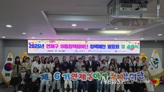 뉴스펀치 김길룡 기자 | 부산시 연제구는 11월 15일 한 해 동안 추진된 아동정책참여단의 활동을 마무리하는 ‘2025년 연제구 아동정책참여단 정책제안 발표회 및 수료식’을 개최했다.