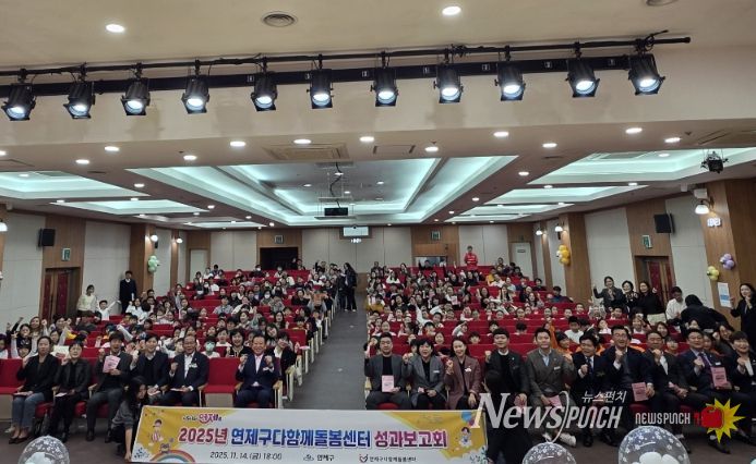 뉴스펀치 김길룡 기자 | 부산시 연제구는 11월 14일 구청 구민홀에서 아동, 학부모, 시설종사자 및 법인관계자 등 250여 명이 참여한 가운데 ‘제1회 연제구다함께돌봄센터 성과보고회’를 개최했다.