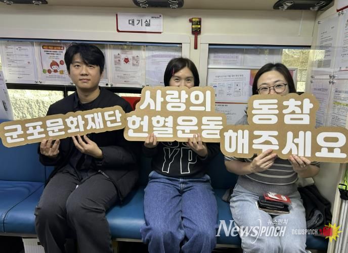 뉴스펀치 김길룡 기자 | 군포문화재단은 임직원들이 지난 11월 7일 ‘사랑의 헌혈운동’을 끝으로 2025년 한 해 동안 총 세 차례에 걸쳐 헌혈운동을 실시하며 지역사회 나눔을 실천했다고 밝혔다.