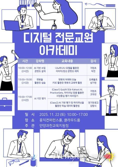 뉴스펀치 김길룡 기자 | 경기도안양과천교육지원청은 11월 22일, 디지털 역량을 체계적으로 강화하기 위한 디지털 전문교원 아카데미 연수를 운영했다. 이번 전문과정에는 관내 초등 교원 30명이 참여해 AI 기반 수업 콘텐츠 설계, 챗봇을 활용한 실습, AI기반 평가, 디지털 문해력 기반 수업 혁신 전략 등 심화 전문 영역을 학습했다.
