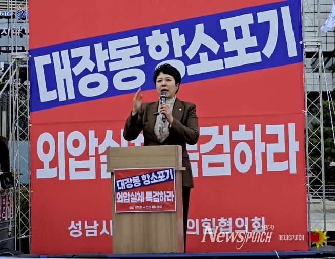 한편 이날 집회를 주최한 성남시의회 국민의힘협의회 정용한 대표의원은“모든 국민이 대장동을 알지만 성남시민은 가장 큰 피해를 입은 피해자이고 그 상처와 시민 재산권 상실은 가해자인 대장동 일당에 대한 검찰의 항소포기가 결정된 순간 불가역적 피해로 확정됐다.”라며 “7400억 범죄수익에 대한 국고 환수와 성남 시민의 재산권 회복을 위해 성남시민과 함께 끝까지 싸우겠다.”라고 전했다.