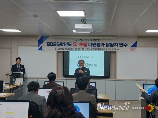 뉴스펀치 김길룡 기자 | 경상북도영천교육지원청은 지난 20일 지역 내 유치원 및 초등학교 인사업무 담당자 21명을 대상으로 2025학년도 유·초등 다면평가 담당자 연수’를 개최했다.