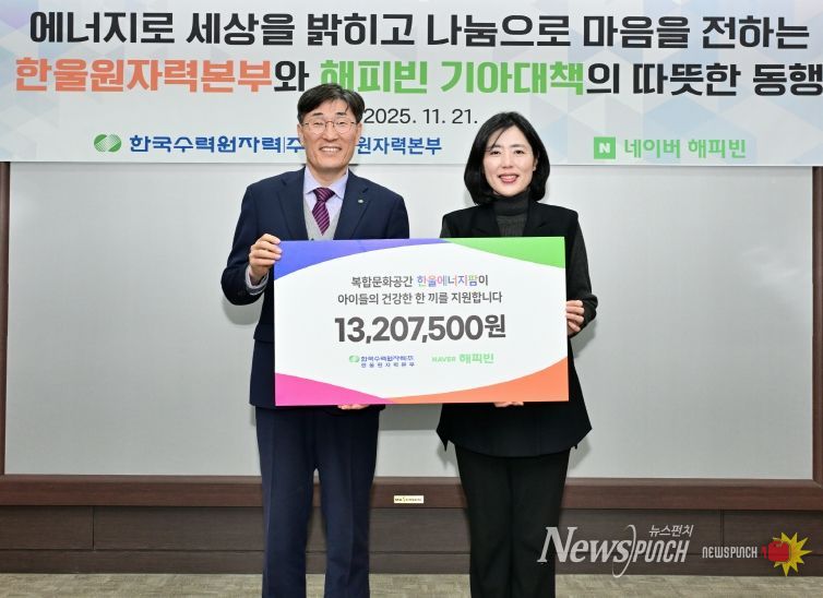 뉴스펀치 김길룡 기자 | 한국수력원자력(주) 한울원자력본부는 11월 21일 한울 다누림 문화 행사를 통해 모금한 1,320만 원의 기부금을 전달하는 행사를 가졌다.