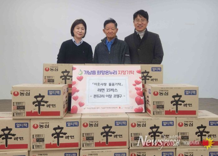뉴스펀치 김길룡 기자 | 가남읍행정복지센터는 지난 20일, 본두2리 조평구 이장이 관내 어려운 이웃들을 위해 라면 15박스를 기탁했다고 밝혔다.