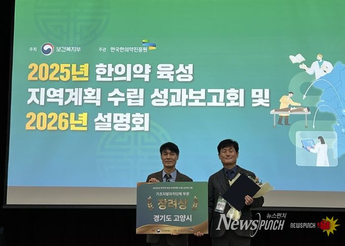 뉴스펀치 김길룡 기자 | 고양특례시가 ‘2025년 한의약 육성지역계획 우수사례 공모전’에서 우수 지자체로 선정돼 보건복지부 장관 기관 표창을 수상했다.