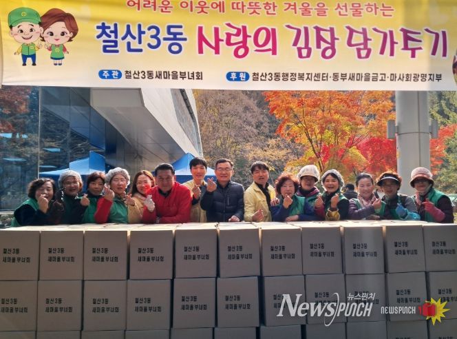 뉴스펀치 김길룡 기자 | 광명시 철산3동 새마을부녀회는 지난 19일부터 20일까지 이틀간 철산3동 행정복지센터 앞마당에서 ‘사랑의 김장 나누기’ 행사를 열었다.