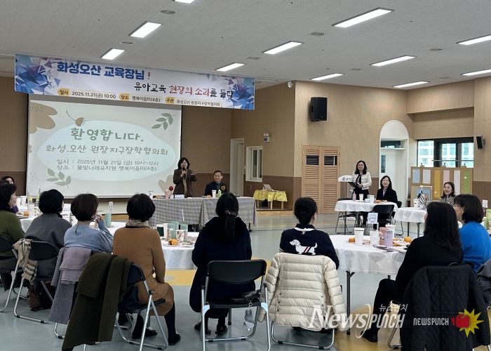 뉴스펀치 김길룡 기자 | 경기도화성오산교육지원청은 11월 21일 물빛나래유치원에서 공립유치원장들이 참석한 가운데 ‘2025 교육장-공립유치원장 소통 간담회’를 개최했다.