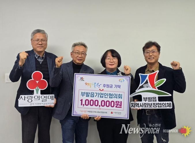 뉴스펀치 김길룡 기자 | 부발읍 기업인협의회가 연말을 맞이하여 지역사회 나눔을 실천하기 위해 부발읍 행정복지센터에 후원금 100만 원을 기탁했다.