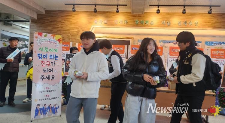 뉴스펀치 김길룡 기자 | 경상북도교육청 의성교육지원청은 2025년 11월 21일 오전, 의성유니텍고등학교에서 학생들의 학교폭력에 대한 경각심을 키우고 자발적인 학교폭력 예방 의지를 강화하기 위한 학교폭력예방 캠페인을 실시했다.