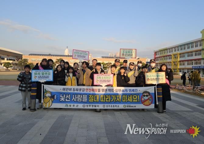 뉴스펀치 김길룡 기자 | 성주군은 11월 20일 성주 초등학교에서 재학생 및 학부모를 대상으로 등하굣길 안전 확보를 위한 ‘어린이 약취·유인 예방 캠페인'을 실시했다.