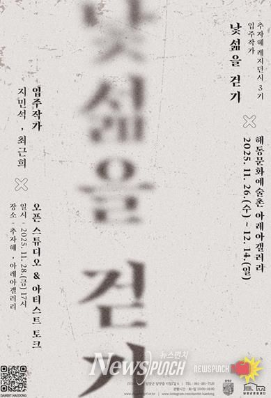 뉴스펀치 김길룡 기자 | 담양군문화재단은 추자혜 레지던시 3기 입주작가 결과발표전시 '낯섦을 걷기'가 오는 11월 26일부터 12월 14일까지 19일간 해동문화예술촌 아레아갤러리에서 열린다고 밝혔다.