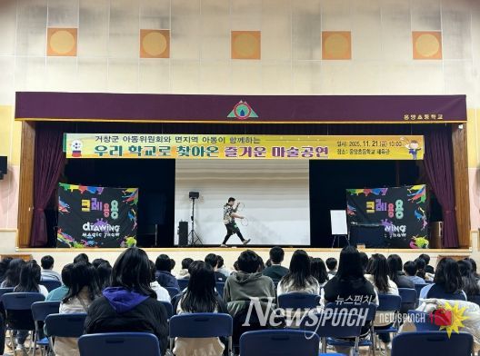 뉴스펀치 김길룡 기자 | 거창군 아동위원회가 주관하는 ‘지역 아동과 함께하는 찾아가는 공연’이 지난 11월 21일 웅양초등학교 체육관에서 개최되어 큰 호응을 얻었다.