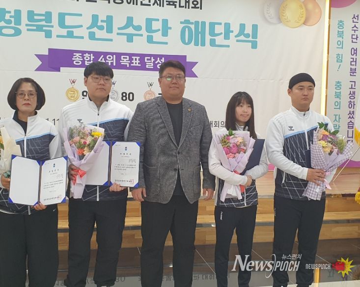 뉴스펀치 김길룡 기자 | 충북도의회 행정문화위원회는 21일 제45회 전국장애인체육대회에 참가한 충청북도선수단의 해단식에 참석해 선수단과 지도자, 관계자들의 노고를 격려하고 감사 뜻을 전했다.