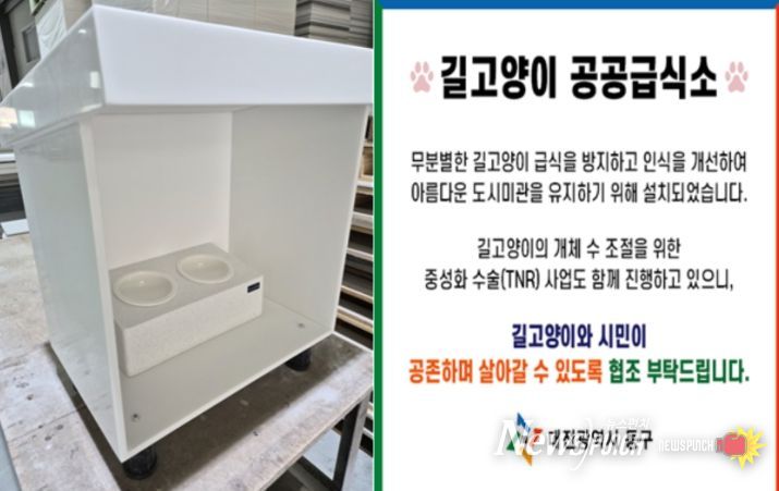 뉴스펀치 김길룡 기자 | 대전 동구는 최근 길고양이 개체 수 증가로 인한 주민 불편과 민원이 지속적으로 제기됨에 따라, 길고양이 급식소 3개소를 확대 설치·운영한다고 21일 밝혔다.