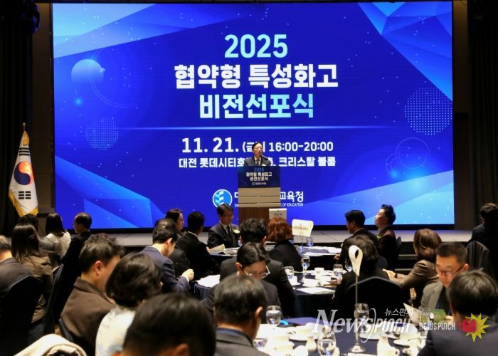 뉴스펀치 김길룡 기자 | 대전시교육청은 11월 21일 대전 롯데시티호텔 크리스탈 볼룸에서 협약형 특성화고 컨소시엄의 공동 비전을 확립하고 지역 산업 인재 양성을 위한 협력을 강화하기 위해 '2025년 협약형 특성화고 비전 선포식'을 개최했다고 밝혔다.