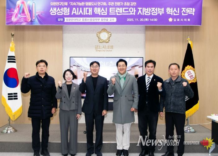 뉴스펀치 김길룡 기자 | 김포시의회 의원 연구단체인‘지속가능한 명품도시 연구회’는 최근 시의회 브리핑룸에서 ‘생성형 AI 시대 핵심 트렌드와 지방정부 혁신 전략’을 주제로 전문가 초청 강연을 열었다고 밝혔다.